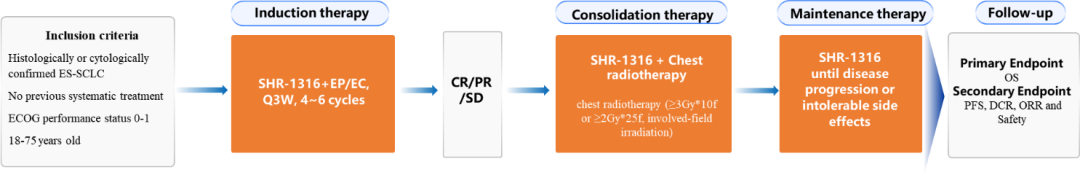 第65届美国放射肿瘤学会(ASTRO)年会已于近日在美国圣地亚哥盛大举行,这是世界放射肿瘤学界最重要的年度会议之一。本次会议中,G22恒峰医药创新药阿得贝利单抗(SHR-1316)联合化疗序贯胸部放疗一线治疗广泛期小细胞肺癌(ES-SCLC)的Ⅱ期研究入选本次ASTRO 简短口头(Mini Oral)报告1。该研究由山东省肿瘤医院于金明院士、王琳琳教授、陈大卫教授团队开展,研究结果显示,阿得贝利单抗联合化疗序贯胸部放疗一线治疗ES-SCLC的ORR(客观缓解率)达90.9%,DCR(疾病控制率)达100%,PFS(无进展生存期)达10.2个月,ES-SCLC患者生存获益有望再次突破。